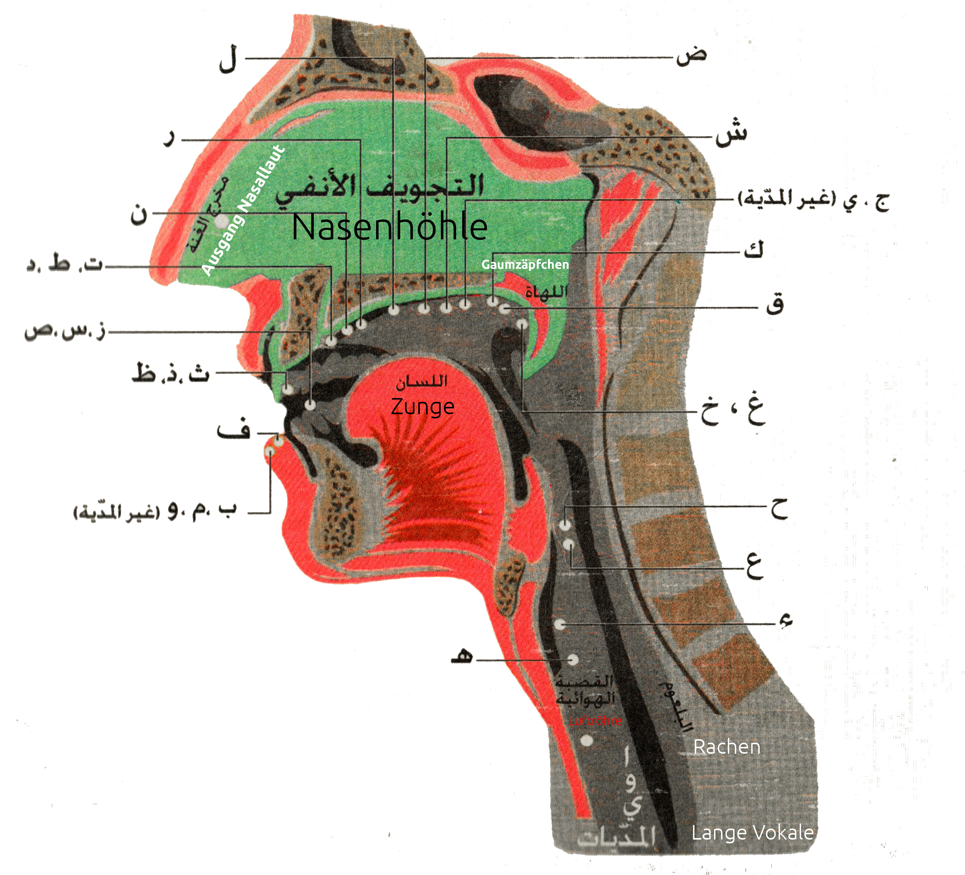 Der Buchstabe Rāʾ hat 5 Zustände wo er stark ist und 4 Zustände wo er leicht ist (siehe unten im