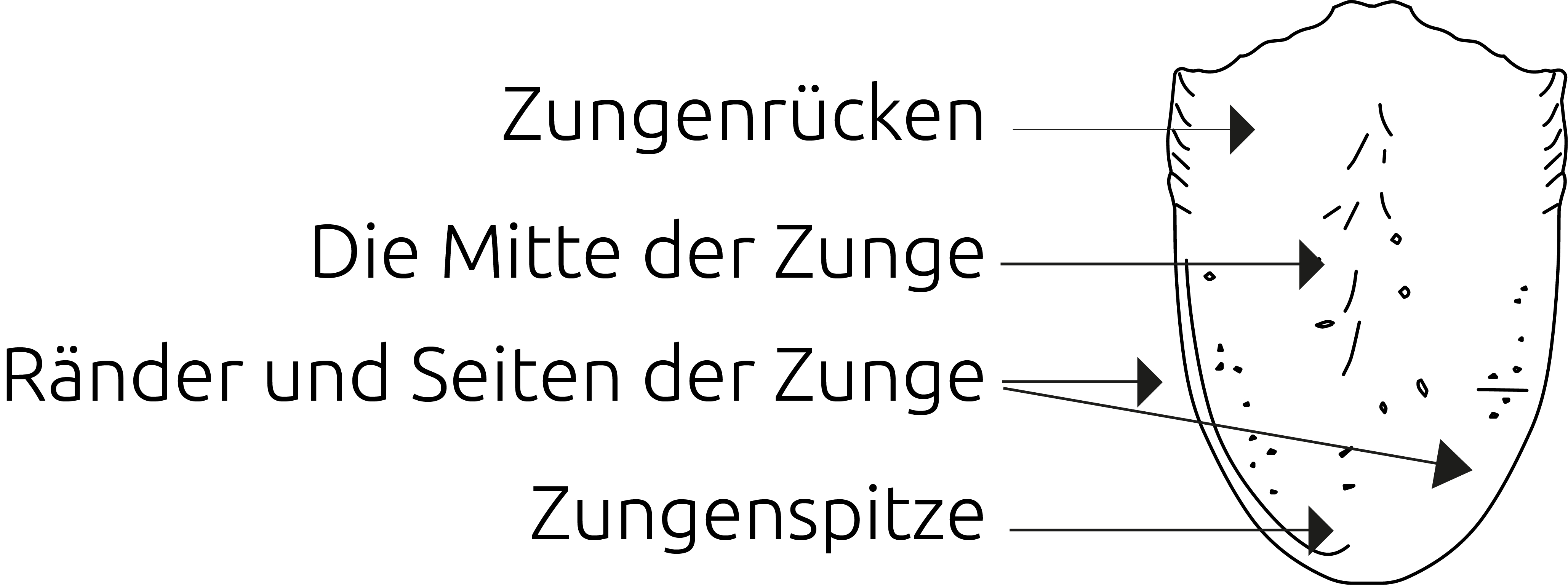 Dies sind die Buchstaben mit vollem Mund, bei deren Aussprache Sie die Zunge anspannen müssen.